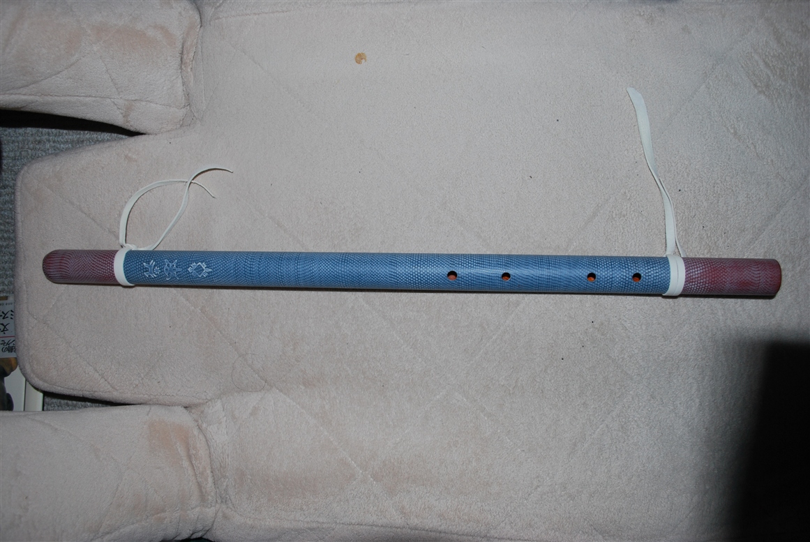 モハベフルートは、美しいのだが、どうやって吹くの?という感じだ。歌口が無いのでただの木の管なのだ。マイケルもあまりに面白味が無いので色を塗ったのか。音は、いかにも祭祀に使うと効果的という感じだ。この笛を見ていると、要するにただの管があれば、孔を開ければ笛になることがよくわかる。この笛の正体というか用途は、段々とわかってくるのだと思う。googleしても情報はあまりひっかからない。神秘的な方が探し甲斐があるというものか。